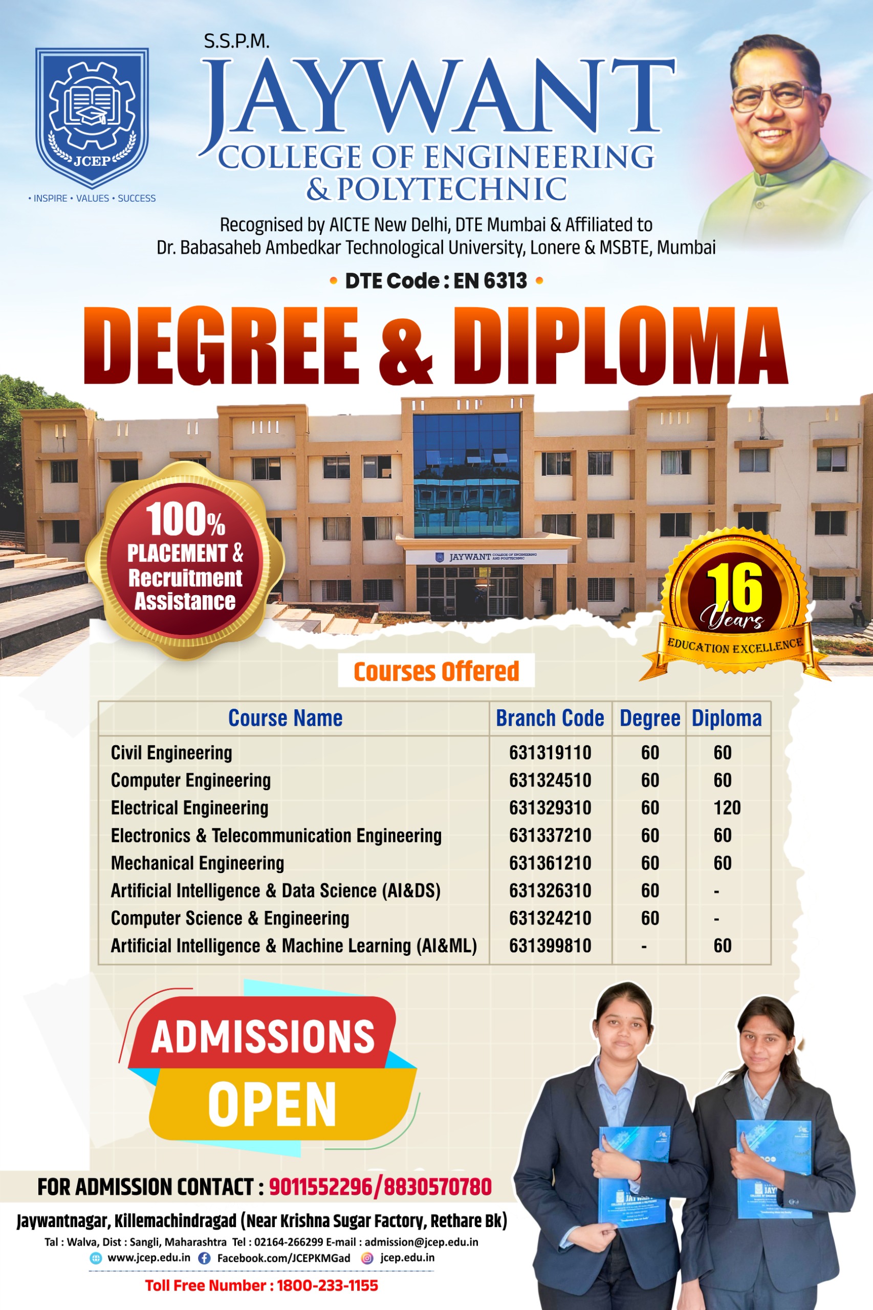 Jaywant College of Engineering and Polytechnic is the best college in Sangli