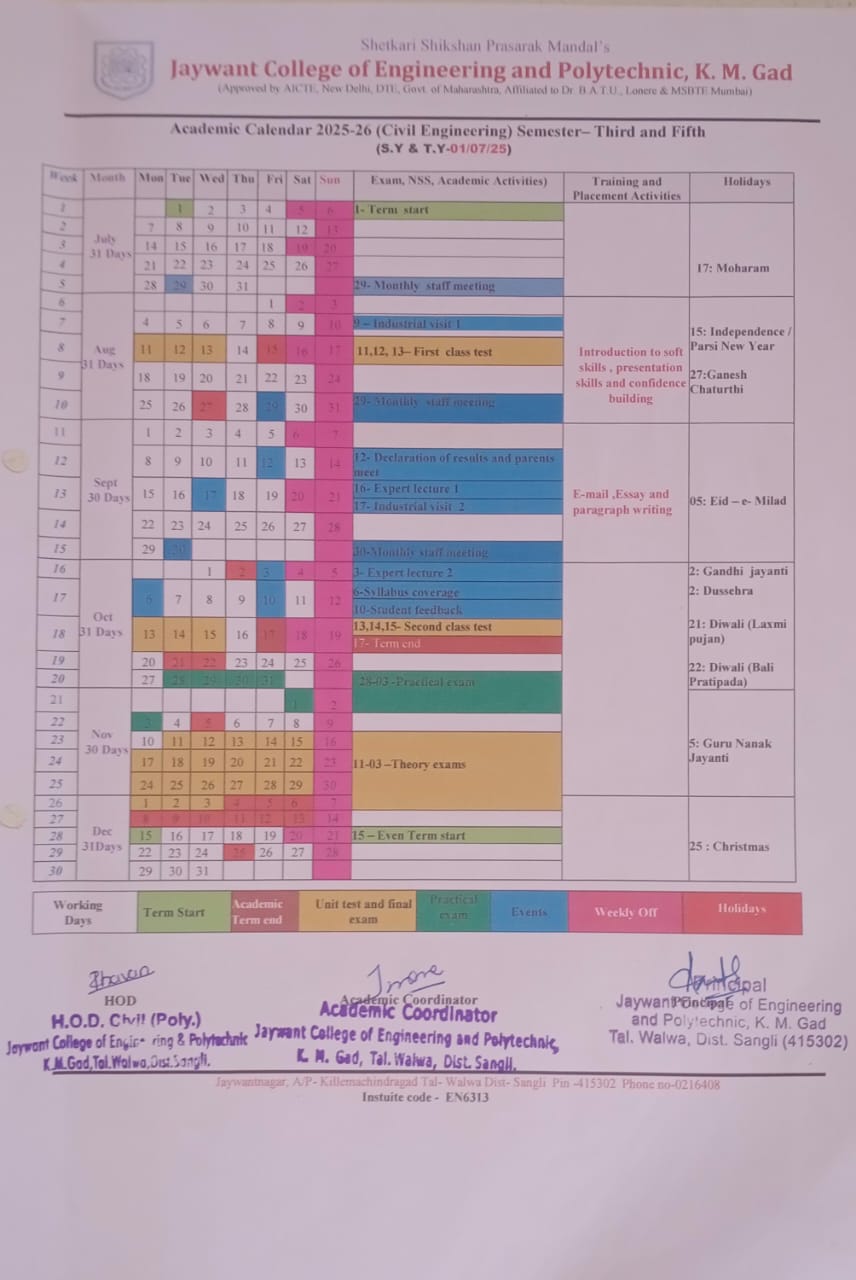 Academic Calendar A.Y. 2025-26 Odd Sem