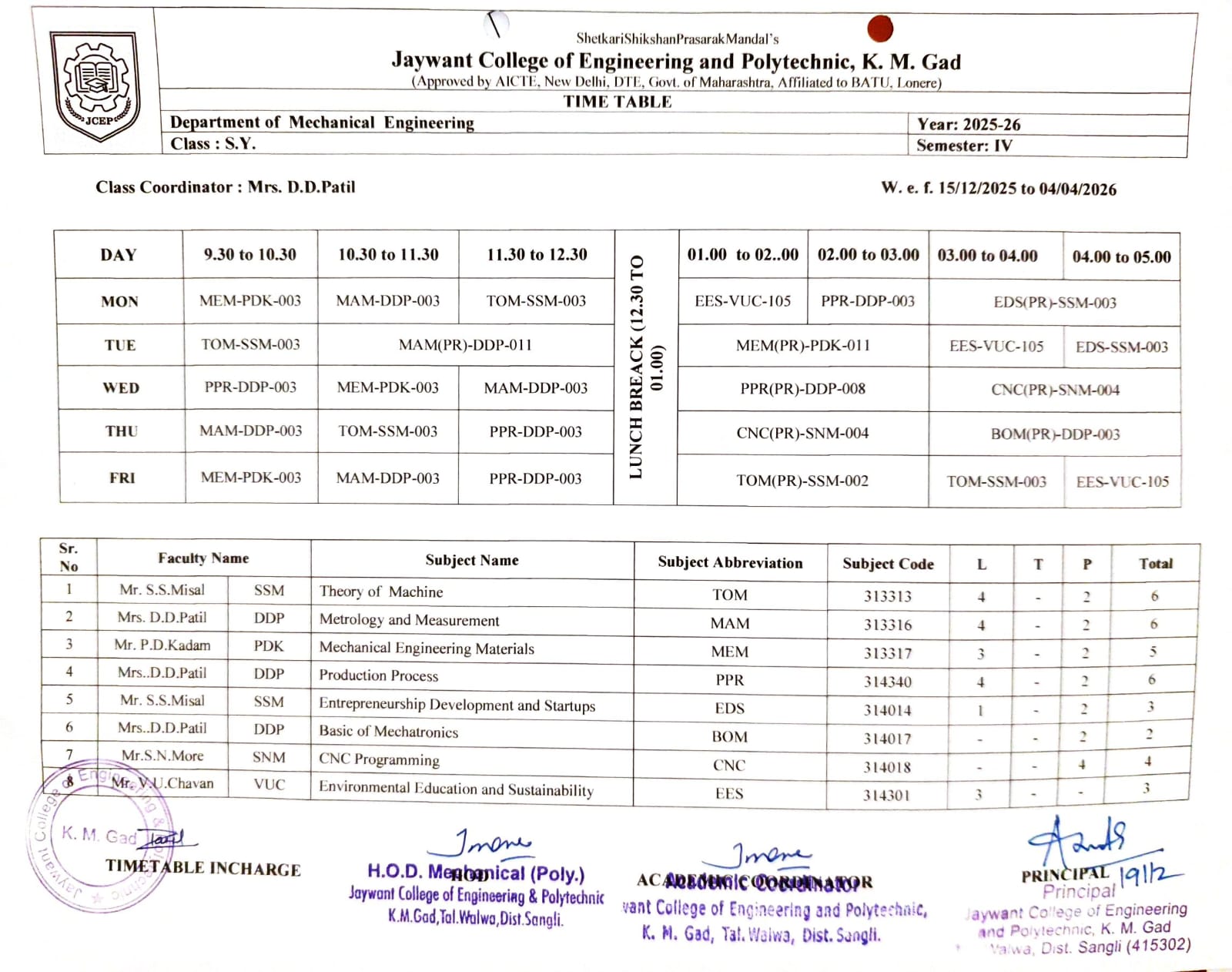SY A.Y. 2025-26 Fourth Sem